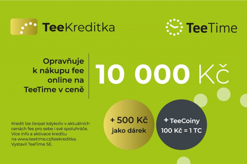 Před prvním použitím je potřeba si TeeKreditku nejdříve aktivovat na webu TeeTime.cz pomocí čísla uvedeného na voucheru.